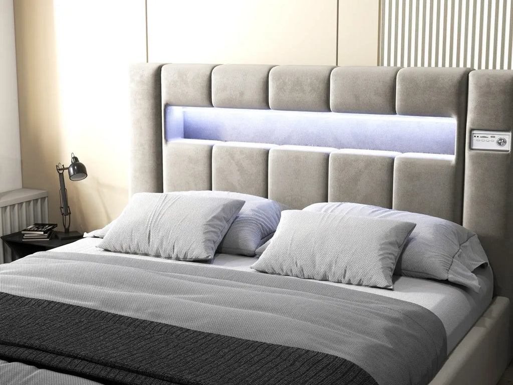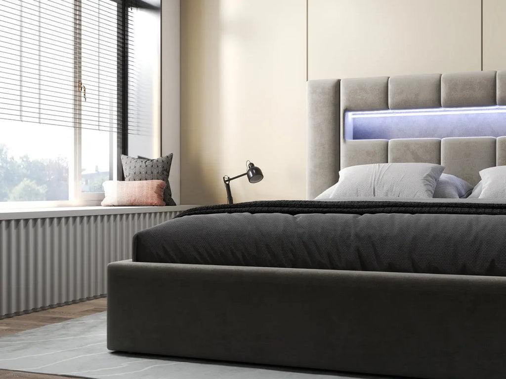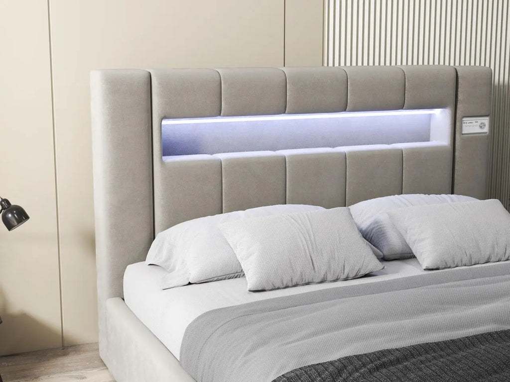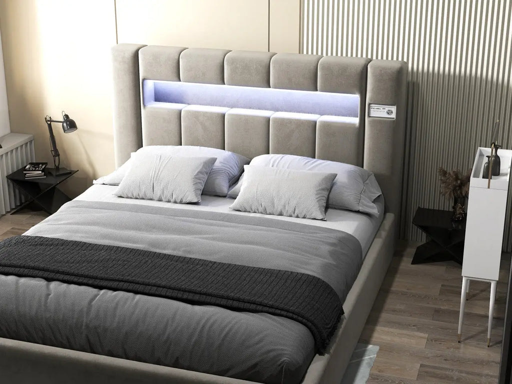 Dumonde hálószobai ágy, bézs kárpitozott, Glow ...