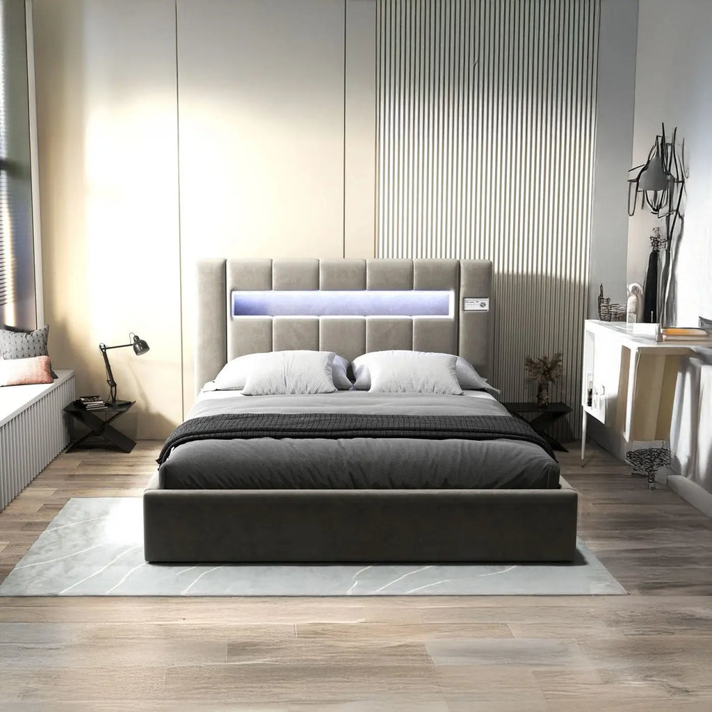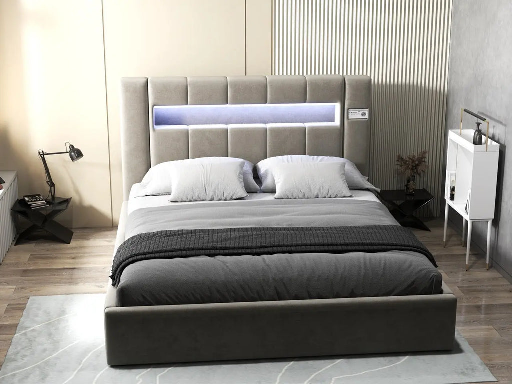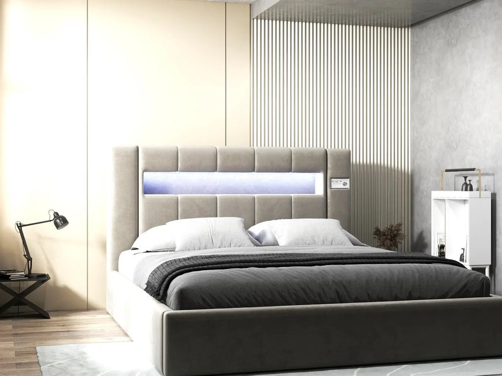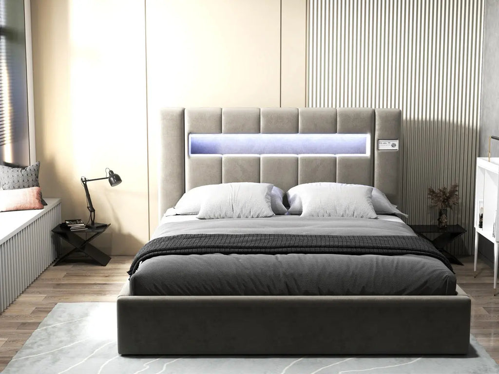 Dumonde hálószobai ágy, bézs kárpitozott, Glow ...
